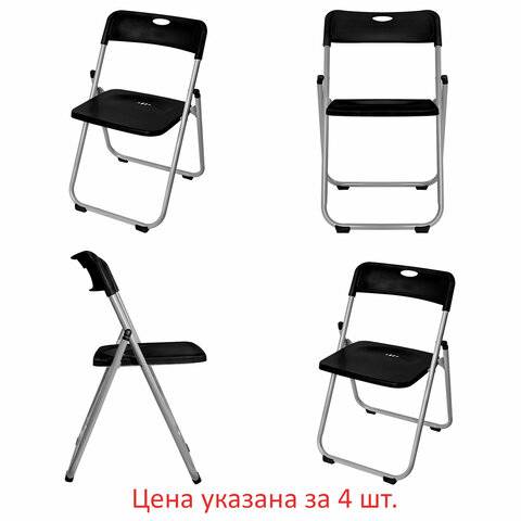 Стулья складные "Golf Lite CF-017", КОМПЛЕКТ 4шт., серебристый каркас, пластик, чёрный, 533034